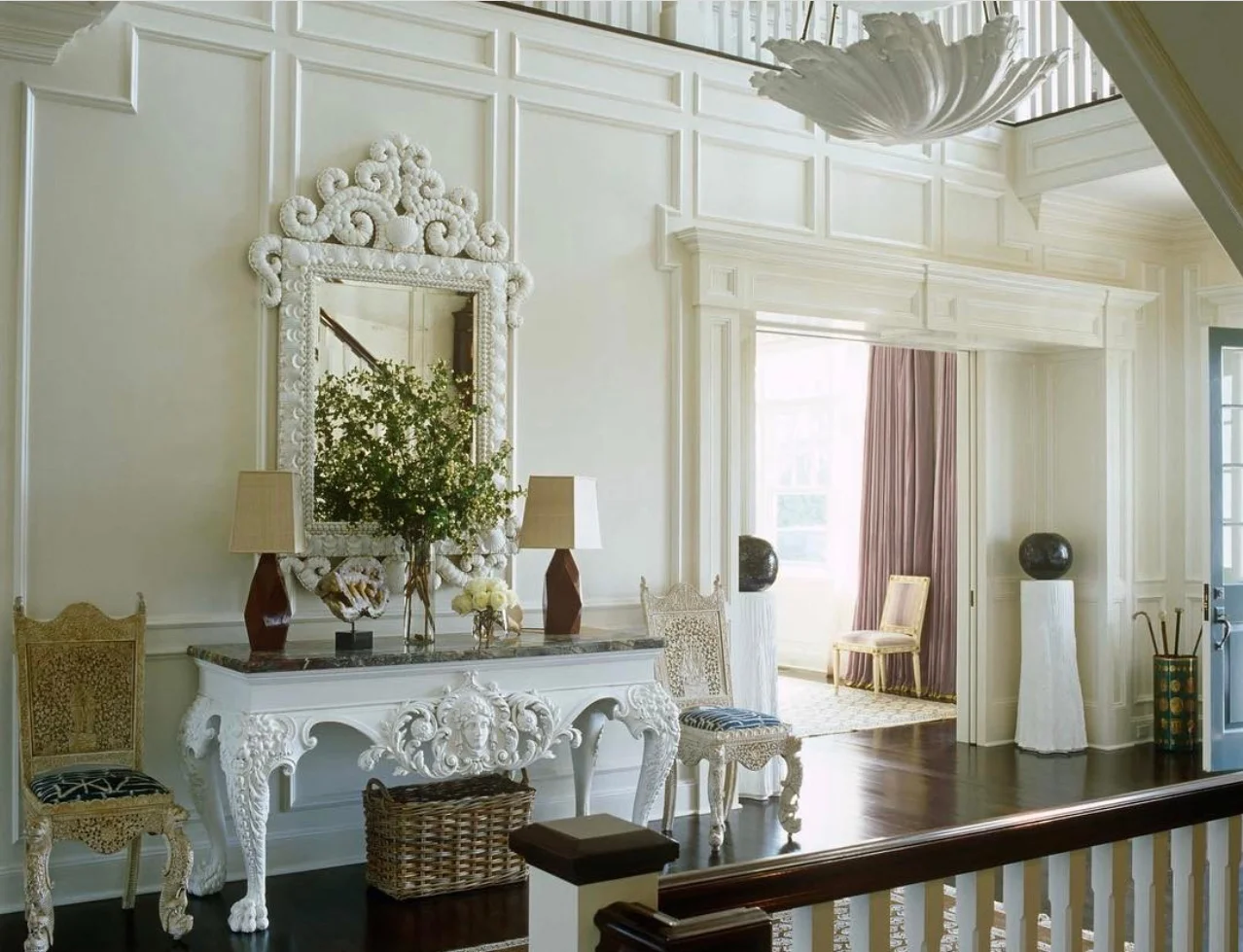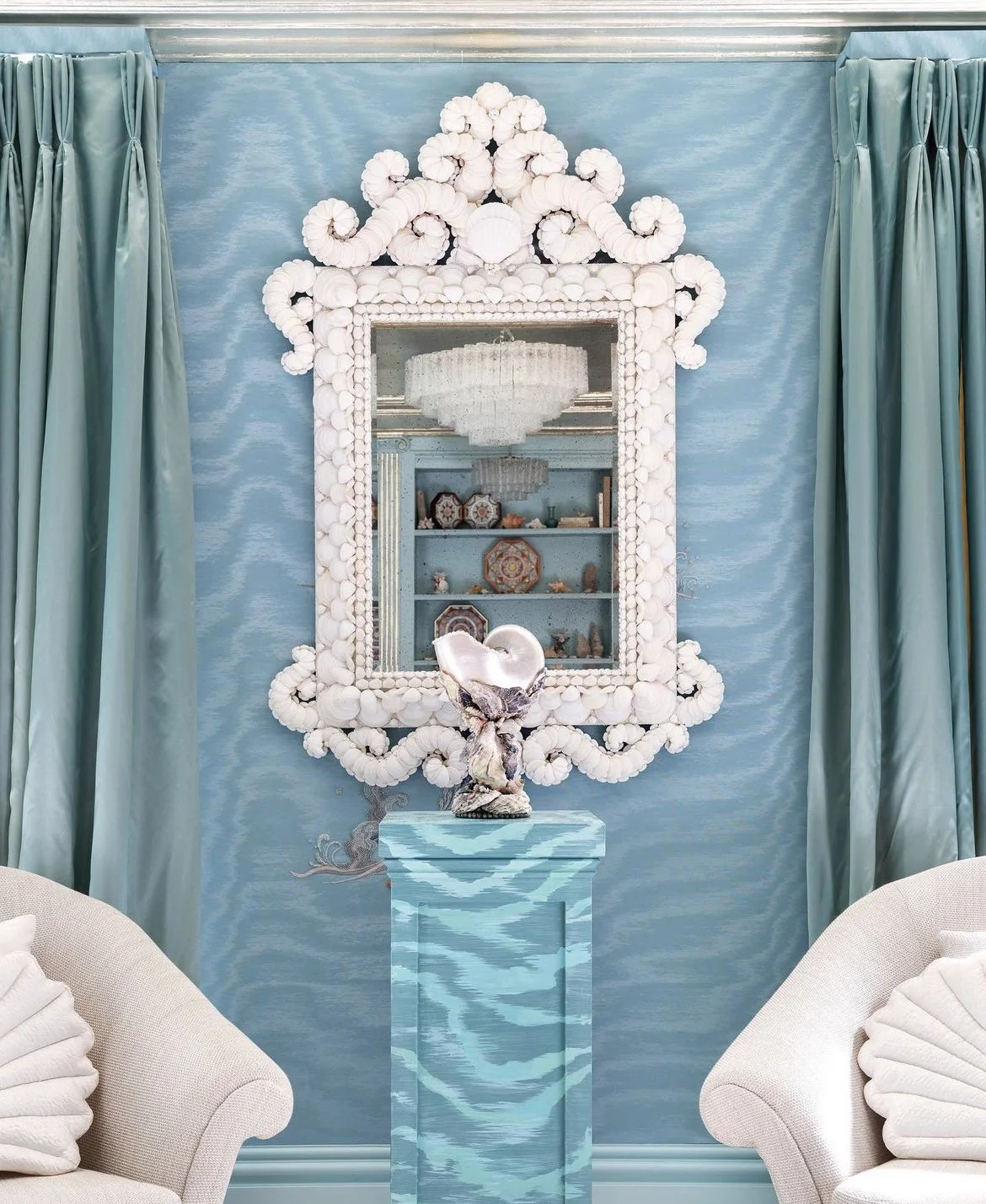White shell mirror in situ at De Gournay Paris showrooms. Image by Alexandra Shamis